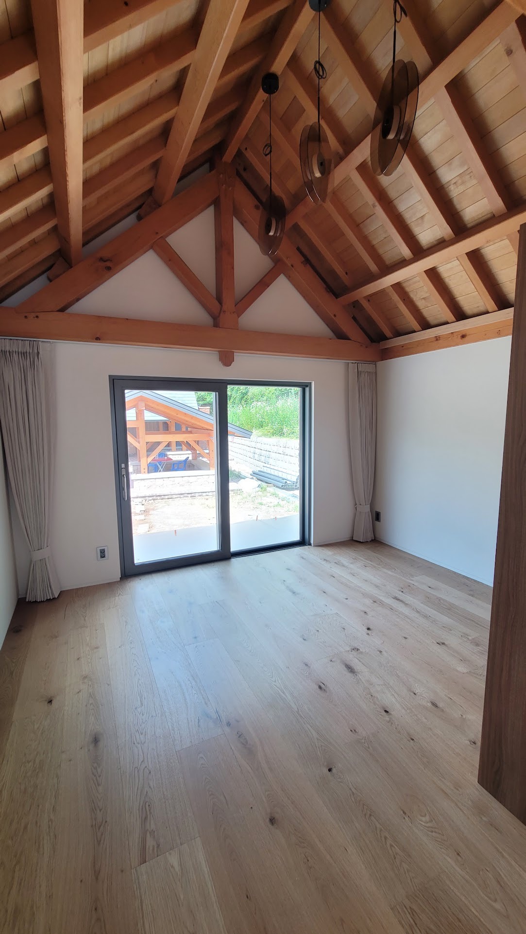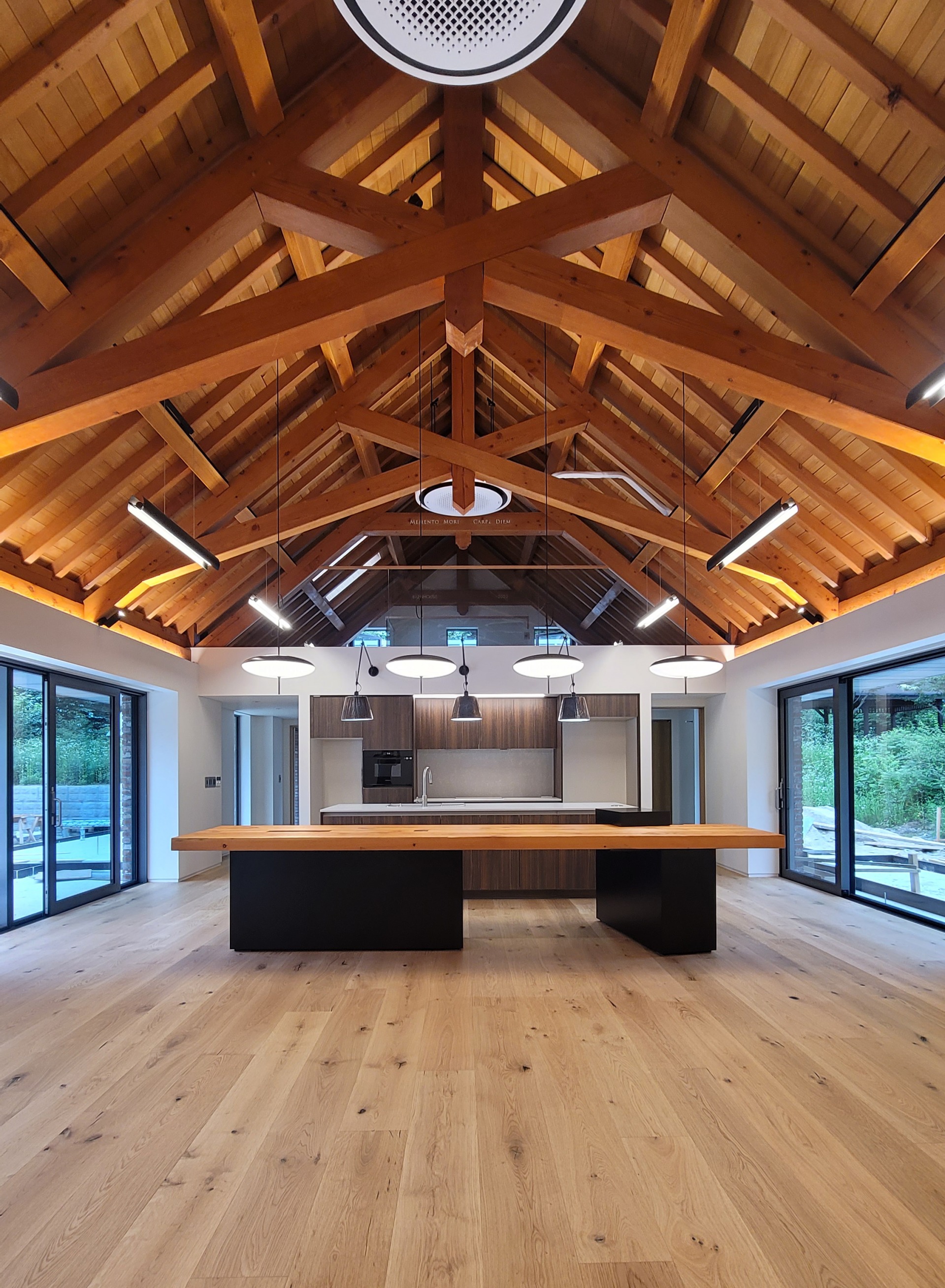 집 외관의 형태가 단순하다. 하여 주택 내부의 프레임은 단순해야 하고 강렬해야 했다. 더 이상 뺄 것 없이 군더더기 없는 구조 속에서 팀버 프레임 특유의 선명한 골격이 공간을 지배하며, 노출된 목재의 부드런 결이 실내와 대비를 이루고, 단단한 창고 같은 이미지에 따스한 온기가 더해지게 될 것이다.