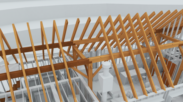 시공성 측면에서는 전통 방식이, 구조적 안정성과 합리성 면에서는 팀버프레임이 유리하다. 전통 건축의 대공 구조는 목재를 수평으로 쌓는 방식이기에 목재 수축은 어느 정도 전제된다. 그렇기 때문에 서까래를 종보 위에 얹는 방식은 구조적으로 매우 합리적인 선택으로 보인다. 그 위의 단열 지붕은 SIP를 사용했다. 팀버 서까래가 견고하니 헛서까래 (Dummy Rafter)를 사용하기보다는 SIP가 단렬과 시공성에서 보다 유리하다고 보았다.