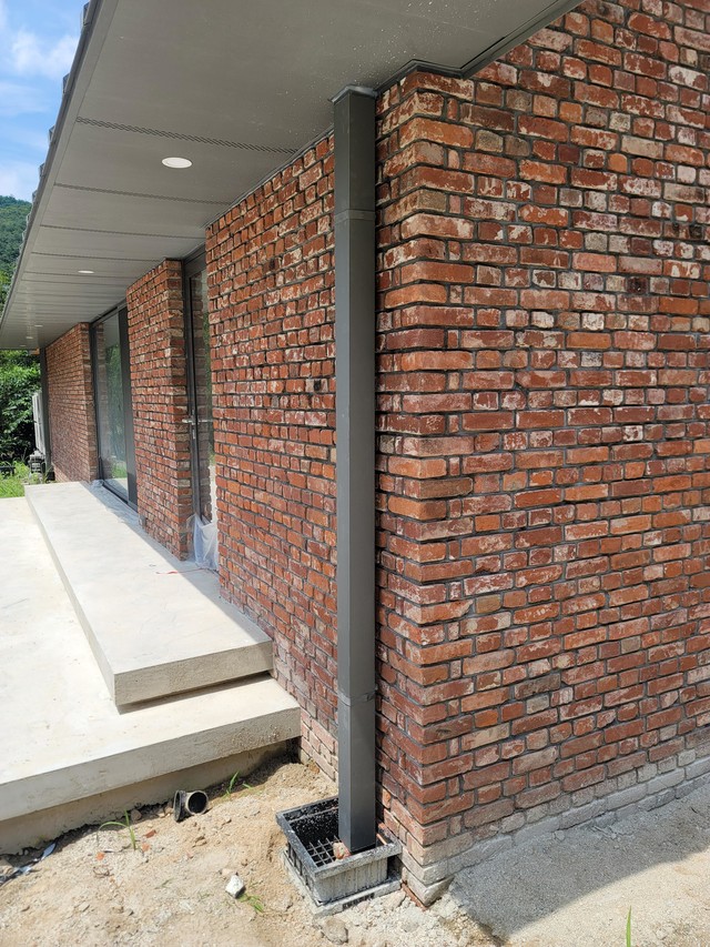 고벽돌 반장(0.5B) 치장쌓기를 적용했다. 본동은 영국식 , 게스트동은 불란서식 쌓기 마감.