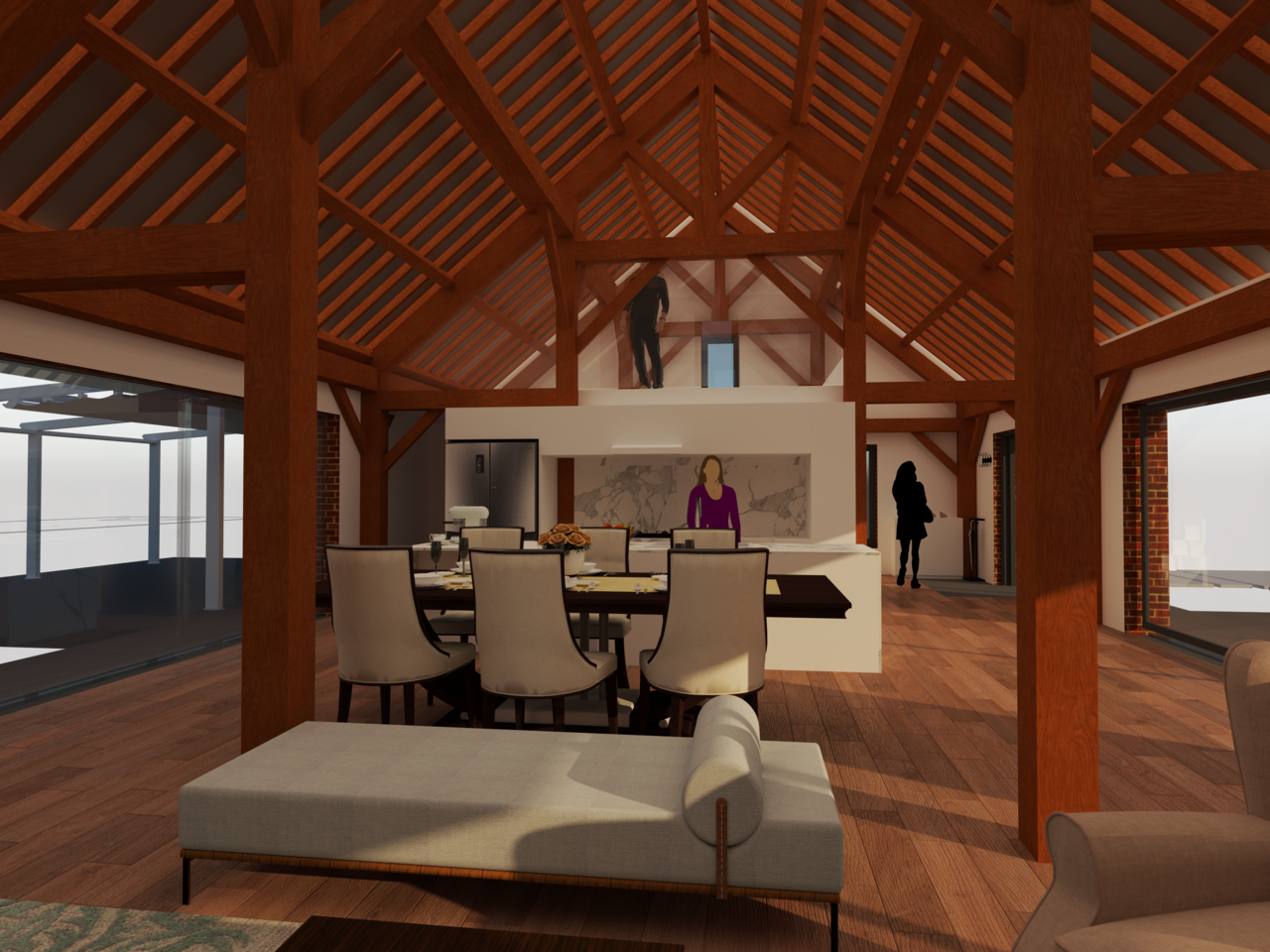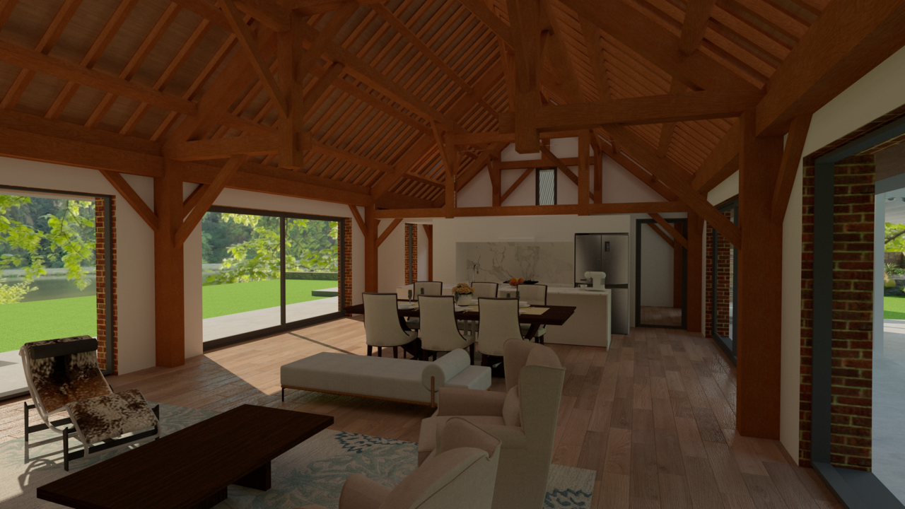 팀버프레임 건축의 특징은 같은 단면의 건물도 다양한 프레임으로 설계 가능 하다. 보통 설계할 때 대략 5~6 가지 프레임을 물망에 올려 검토한 후2~ 3가지 프레임을 프레젠테이션 한다.